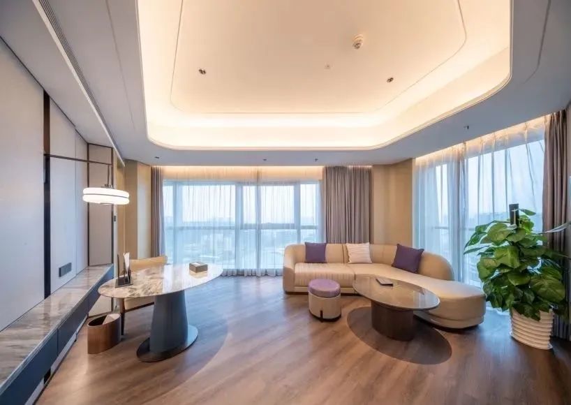 兩棟塔樓以舒展向上的姿態(tài)屹立,通過輕微凹進的形態(tài)塑造出更修長優(yōu)雅的輪廓,并互為輝映。項目主塔樓38層,高210米,是珠海西部第一高樓;副塔樓38層,高139.5米。其中,主塔樓高區(qū)(21-38F)為甲級寫字樓;低區(qū)(6-20F)為萬豪酒店,總建筑面積約4萬㎡,提供297間高端客房以及完善的餐飲、宴會、休閑等設(shè)施,打造自在舒適的商旅體驗;裙樓則設(shè)置酒店大堂、宴會廳、會議中心等。